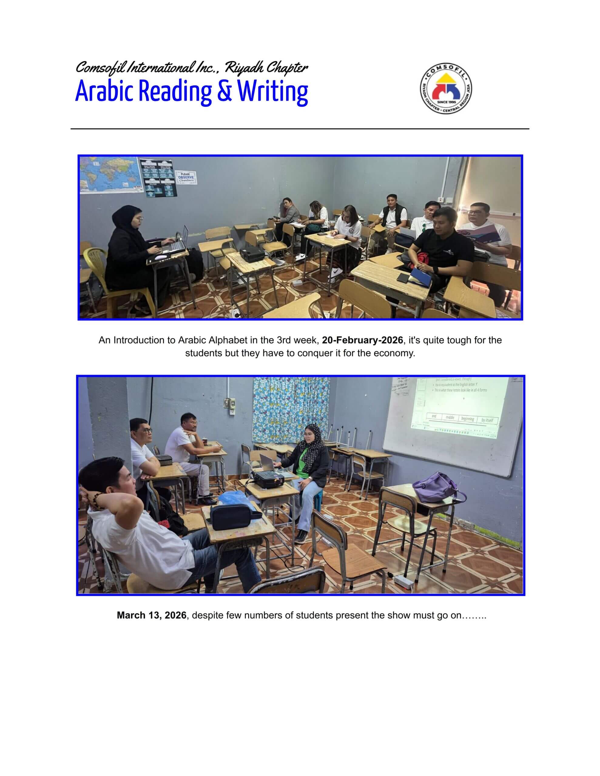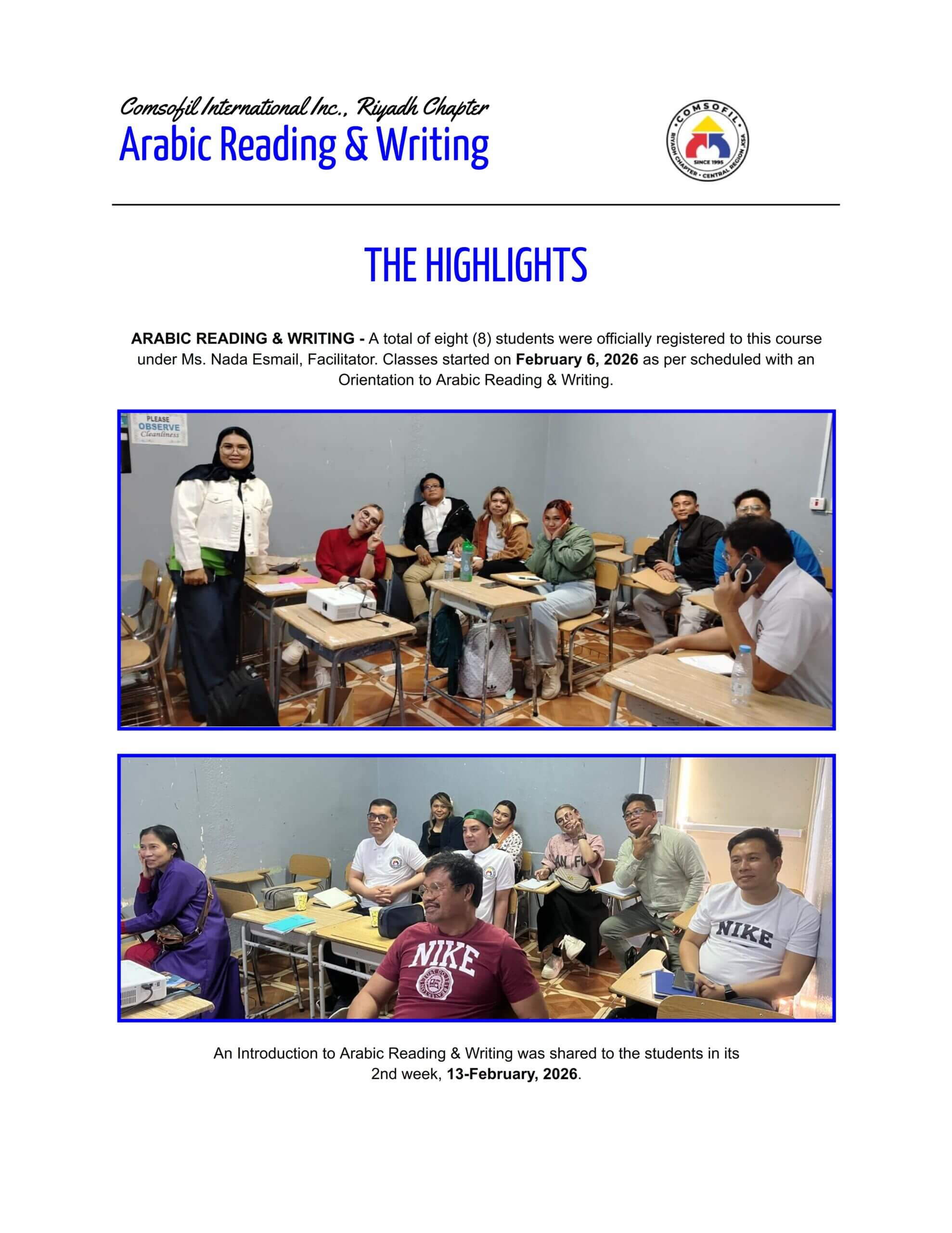 ARABIC READING & WRITING - A total of nine (9) students were officially registered to this course under Ms. Nada [...]